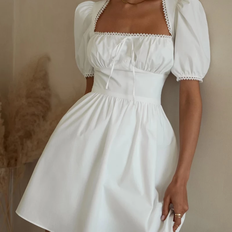 2022 New Women Sexy Cutout Mini Dress Summer Fashion Lady Slash Neck White Sundress Puff Sleeve Big Swing Party LICHI Dresses