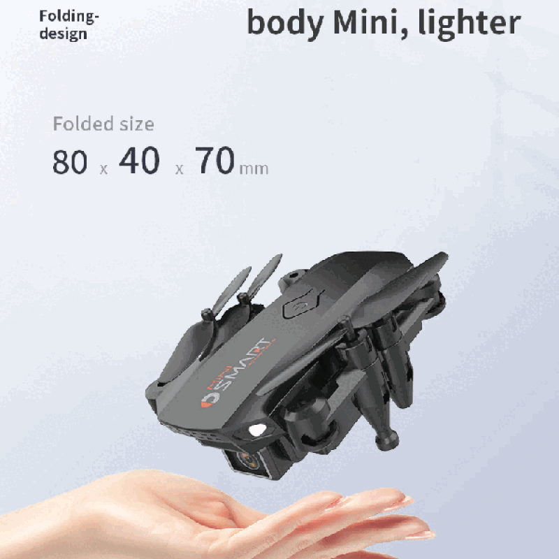 Product features : 8CM mini folding body, one-button takeoff and landing, air pressure fixed height, hover, fast and slow speed control,360 degree roll, one-button return, headless mode, route planning, gesture video camera. 4K dual camera, 2.4g signal, HIGH-DEFINITION picture, stunt roll, APP control