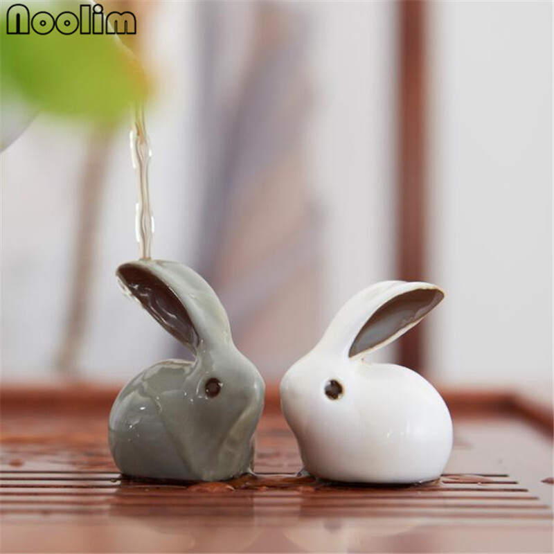 Ceramic Rabbit Tea Pets Ornament Chinese Folk Art Handmade Porcelain Crafts Small Animal Figurines Home Decoration