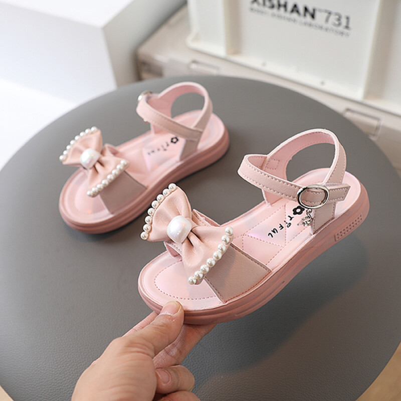 Children Sandals Girl 2022 Summer Kid Pink Butterfly Knot Light Kid Slippers Cute Pearl Flat Casual Girl 4-6 Year Prince