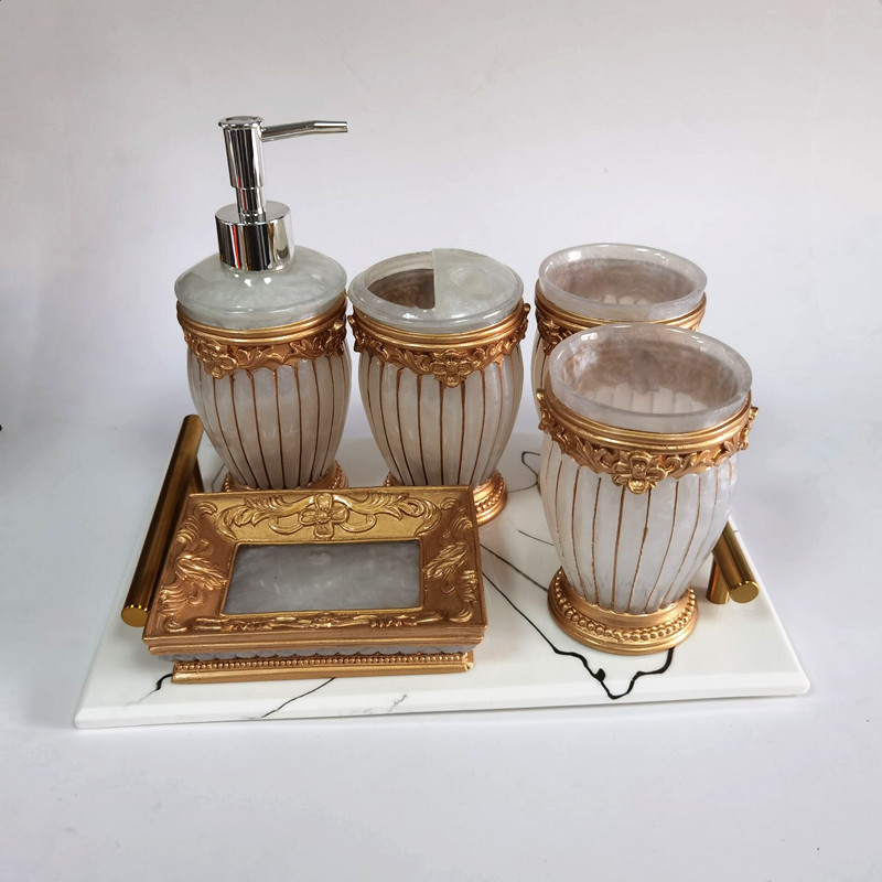 5pcs (2* cup, 1* toothbrush holder, 1* soap dish, 1* lotion bottle)