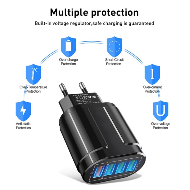 USB Charger Fast Charge 5.0 Wall Charging For Samsung Xiaomi Mobile 4 Ports EU Plug Adapter Travel