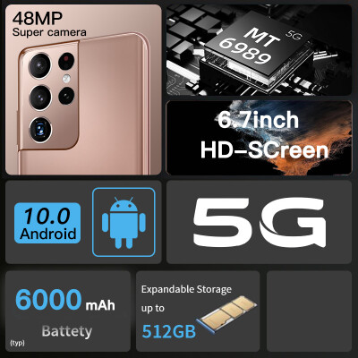 Original S21 Ultra 6.1 Inch 5G Phones 16G+512G 48MP 5000mAh Android 10 Smartphone MTK6889 11-Core Face Fingerprint ID