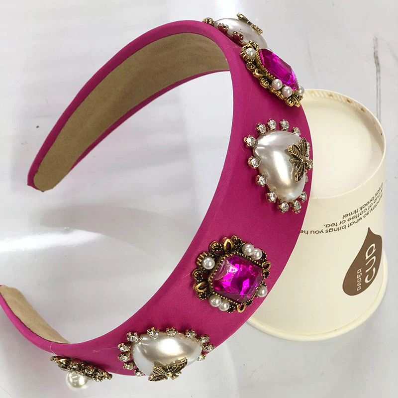 Baroque Rhinestone Headband Hairband for Women Girls Metal Bee Beads Flower Head Hair Accessories Baroque Rhinestone