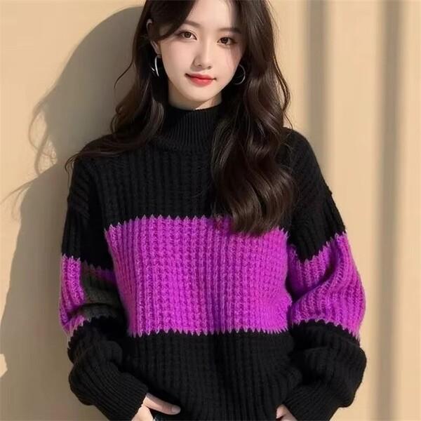 Make a bold and cozy statement this season with our Cross Border Color Blocking Thick Thread Loose Sweater. This isn't your ordinary winter knit—it's a piece of wearable art. Designed for those who embrace standout style, it features a unique, cross-border color blocking pattern in rich, contrasting hues, knitted with a distinct thick thread for incredible texture and volume. The intentionally loose, oversized "lazy" silhouette offers ultimate comfort and a fashion-forward, effortless vibe. As a versatile base top, it layers beautifully under jackets or stands alone as the centerpiece of any outfit. Embrace the new winter with this fashionable, stylish, and uniquely knitted essential that redefines cozy.