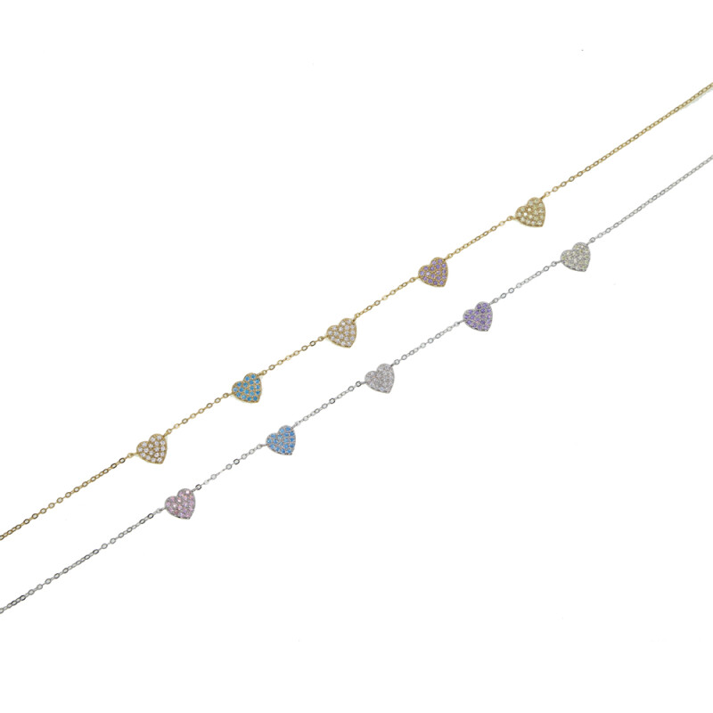 Fashion 925 Sterling Silver Multi Heart Colorful Cz Paved Rainbow Pendant Necklace for Women White Gold Bijoux Female