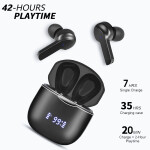 Earbuds playtime lasts for 7 hours from single charge and total 42 hours with charging case., no worry about sudden power outage while traveling. LED display accurately display the remaining power charging case.